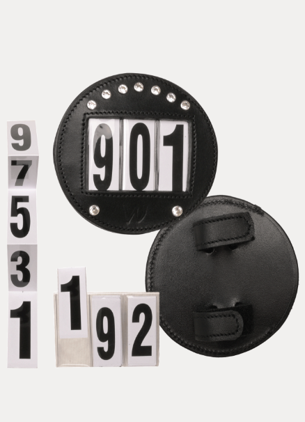 Kisanumero on valmistettu pehmeästä nahasta, joissa kauniita strasseja. Kilpailunumeroiden helppo vaihtaminen. Säädettävissä 1-999. Helppo kiinnittää suitsiin kahdella tarrakiinnityksellä.